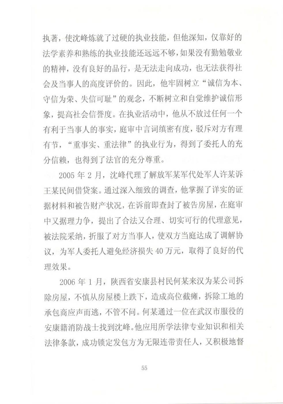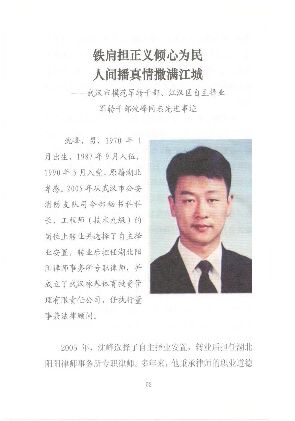 我所沈峰主任律师事迹被刊载于 2013版《武汉市自主择业军转干部典型事迹材料选编》